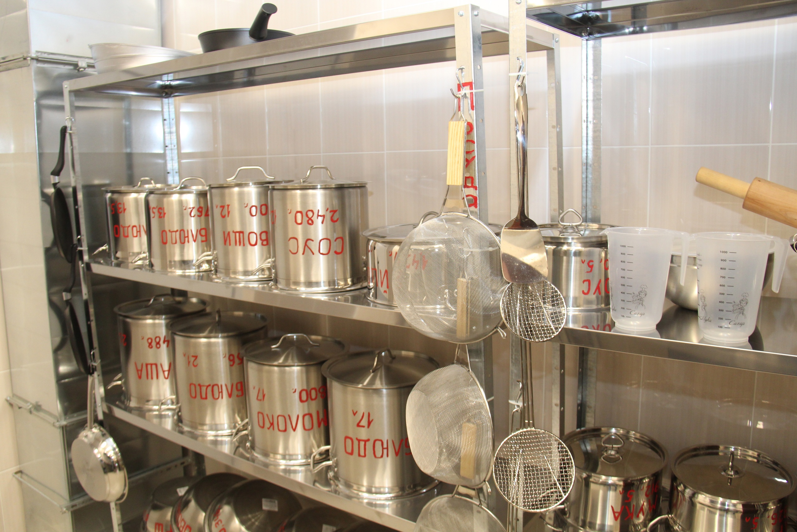 Пищеблок оснащён необходимым для приготовления пищи оборудованием: электроплитами, духовым шкафом, пароконвектоматом, электрической мясорубкой, овощерезкой, холодильниками, морозильными камерами и уборочным инвентарём. Оборудованы моечные для посуды. Всё оборудование находится в рабочем состоянии и соответствует современным санитарно-гигиеническим требованиям. Имеется кладовая для хранения продуктов, оборудованная стеллажами. Для взвешивания продуктов имеются весы. Санитарно-гигиенический режим пищеблока строго соблюдается.